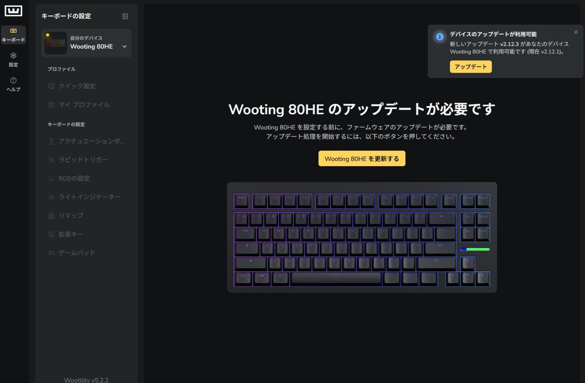 また、ソフトウェア(Wootility)の完成度が非常に高いのも大きなポイントです。